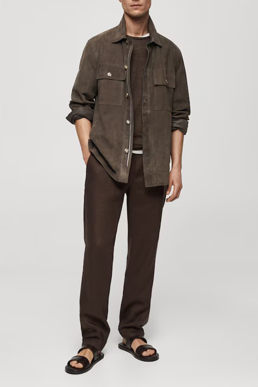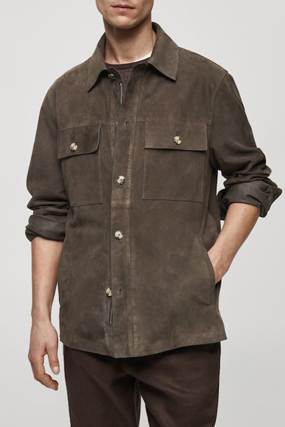 Suede Leather Jacket With Pockets 55120597